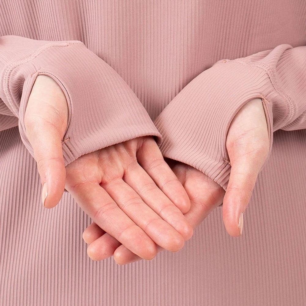 - doppellagige, anliegende Ärmelbündchen mit Daumenloch